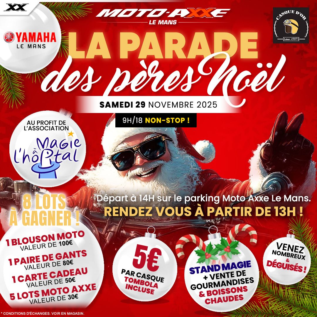 Événement organisé en partenariat avec le Moto Club Association Casque d’Or, avec la participation de la FFMC72, Les Motards du Mans et Les Ruptés du Casque !
